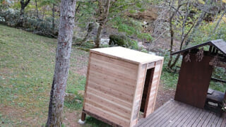 当サウナの目の前には、標高1,000mの分水嶺から流れる一級河川「一色川」が流れています。その源流となる、飲用可能なほどの清らかな地下水を、贅沢にもサウナ後のクールダウンに利用しています。